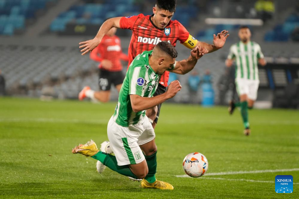 MONTEVIDEO, 24 julio, 2024 (Xinhua) -- Imagen del 23 de julio de 2024 del jugador Dylan Nandín (frente), de Racing de Uruguay, disputando el balón con Benjamín Gazzolo (atrás), de Huachipato de Chile, durante un partido correspondiente a los playoff de la Copa CONMEBOL Sudamericana celebrado en el estadio Centenario, en Montevideo, capital de Uruguay. (Xinhua/Nicolás Celaya)