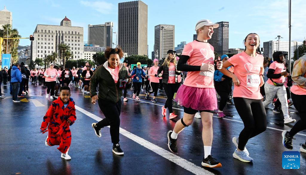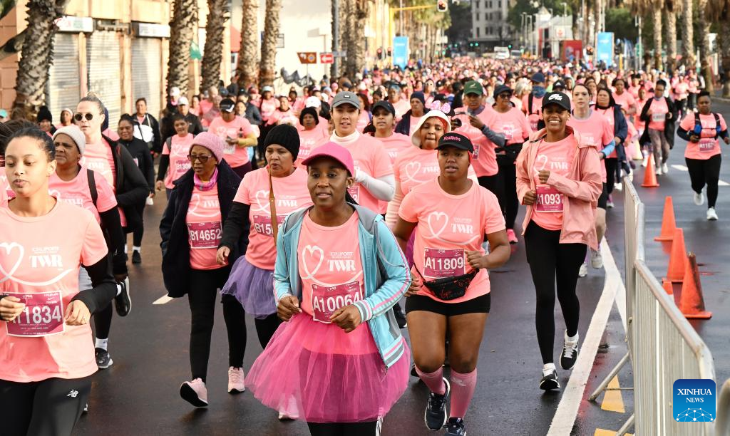 CIUDAD DEL CABO, 9 agosto, 2024 (Xinhua) -- Participantes corren durante la carrera femenina en Ciudad del Cabo, Sudáfrica, el 9 de agosto de 2024. Una carrera femenina se llevó a cabo el viernes aquí para celebrar el Día Nacional de la Mujer. (Xinhua/Xabiso Mkhabela)