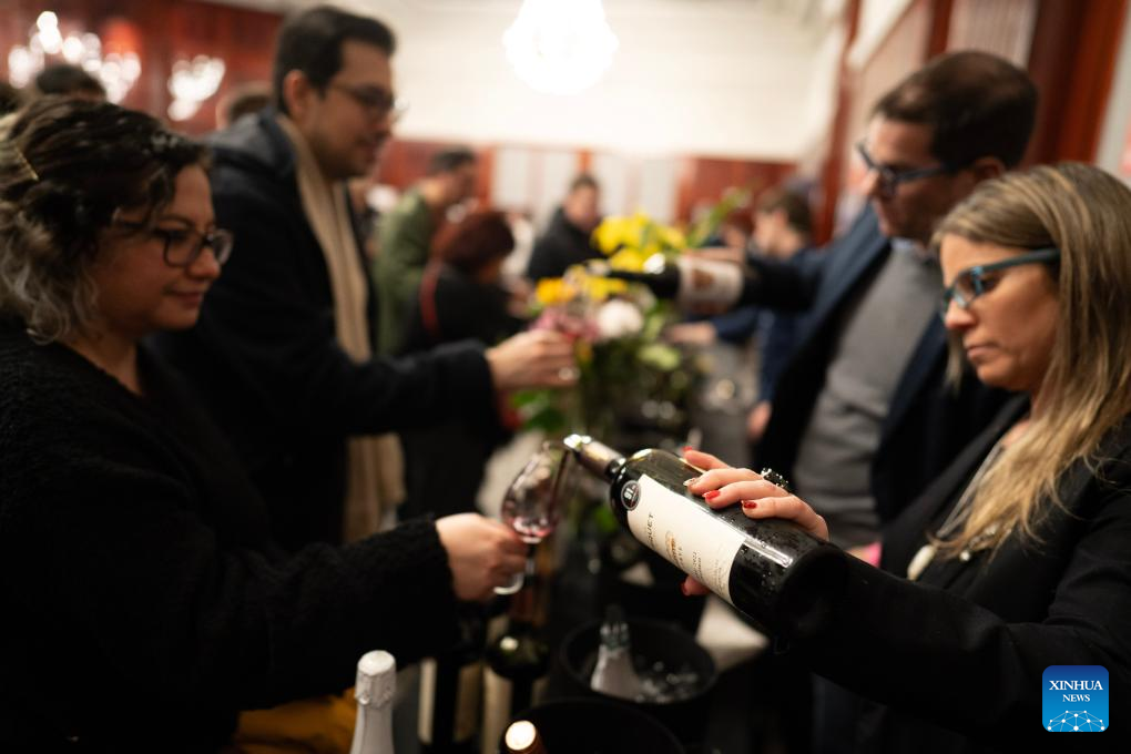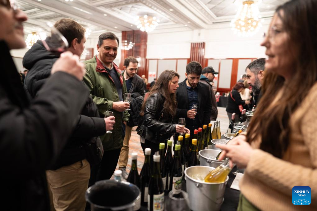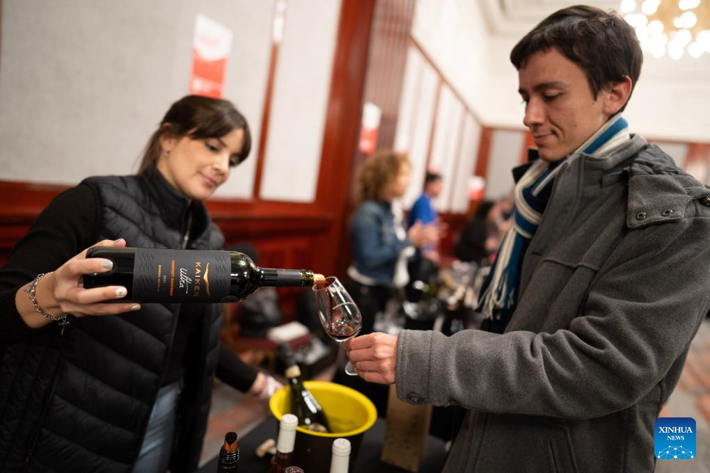 Imagen del 9 de agosto de 2024 de personas reaccionando en un estand durante la 10ª edición de la Feria de Vinos Orgánicos y Sustentables, en la ciudad de Buenos Aires, capital de Argentina. Las bodegas productoras de vinos orgánicos y sustentables de Argentina, que cada vez ganan más terreno en el mercado interno, también están decididas a expandir sus fronteras exportadoras, identificando a China como un mercado dinámico y en constante sofisticación. (Xinhua/Martín Zabala)