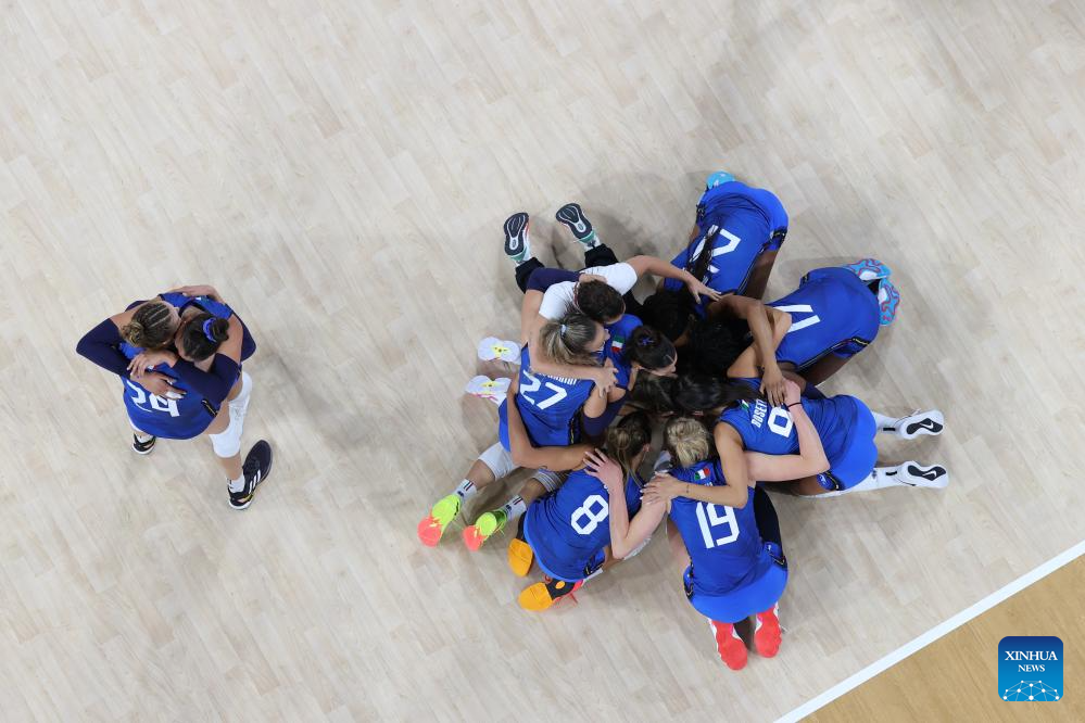 PARIS, 11 agosto, 2024 (Xinhua) -- Jugadoras de Italia festejan la victoria al término de la final de voleibol femenino entre Italia y Estados Unidos en los Juegos Olímpicos de París 2024, en París, Francia, el 11 de agosto de 2024. (Xinhua/Ju Huanzong)