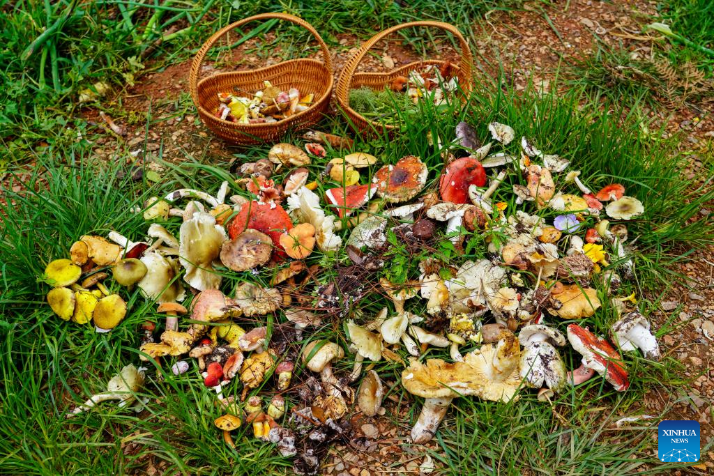 KUNMING, 13 agosto, 2024 (Xinhua) -- Imagen del 4 de agosto de 2024 de hongos silvestres recolectados durante un "recorrido de recolección de hongos", en Kunming, en la provincia de Yunnan, en el suroeste de China. Varios visitantes hacen un viaje especial a Yunnan para participar en recorridos de recolección de hongos, cuando las abundantes lluvias y las temperaturas moderadas de la provincia marcan el comienzo de una temporada excelente para los hongos silvestres cada verano. (Xinhua/Wang Jingyi)