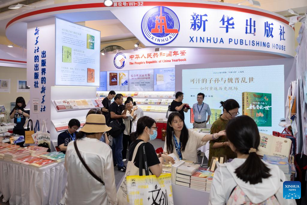 SHANGHAI, 14 agosto, 2024 (Xinhua) -- Personas visitan la Feria del Libro de Shanghai 2024, en Shanghai, en el este de China, el 14 de agosto de 2024. La feria del libro comenzó el miércoles y durará hasta el 20 de agosto. (Xinhua/Wang Xiang)