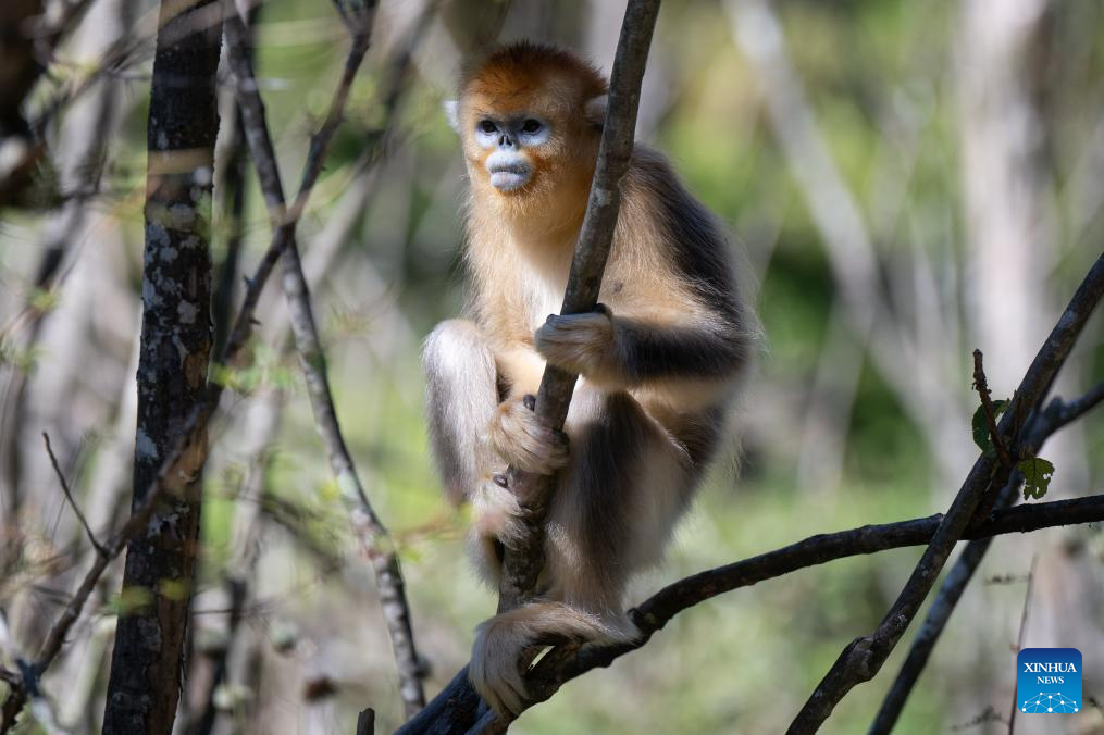 SHENNONGJIA, 15 agosto, 2024 (Xinhua) -- Imagen del 15 de agosto de 2024 de un mono dorado en el Centro de Investigación del Mono Dorado de Dalongtan, en el Parque Nacional Shennongjia, bajo el distrito forestal de Shennongjia, en la provincia de Hubei, en el centro de China. El distrito forestal de Shennongjia, en la provincia de Hubei, en el centro de China, ha informado de un aumento de la población de monos dorados, gracias a los esfuerzos en la protección del hábitat. El distrito es el nuevo hogar en la actualidad para 1.618 monos dorados, 147 más que en el anterior conteo de hace cinco años, de acuerdo con los resultados del cuarto conteo dirigido por la administración del distrito. Conocido desde hace mucho tiempo por su prístina belleza natural y su rica biodiversidad, el distrito forestal de Shennongjia, ha mejorado continuamente la diversidad y la estabilidad de su ecosistema y ha promovido integralmente la gestión sistemática de montañas, ríos, bosques, campos, lagos y pastizales a lo largo de los años. La calidad del entorno ecológico ahí continuó mejorando y la tasa de cobertura forestal se mantuvo estable en el 91,12 por ciento. (Xinhua/Xiao Yijiu)