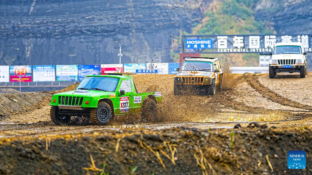 FUXIN, 15 agosto, 2024 (Xinhua) -- Imagen del 18 de septiembre de 2023 de automóviles de carreras corriendo en una competencia en la Ciudad Internacional de Carreras del Centenario de Fuxin, en la ciudad de Fuxin, en la provincia de Liaoning, en el noreste de China. El centro de carreras de automóviles y motocicletas se transformó de una mina abandonada gracias a años de restauración ecológica. (Xinhua)