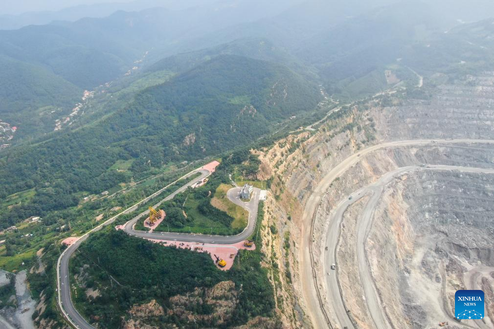 BENXI, 15 agosto, 2024 (Xinhua) -- Vista aérea tomada con un dron del 15 de agosto de 2024 de una parte de la mina a cielo abierto de hierro de Nanfen, que se ha transformado en un lugar escénico, en Benxi, provincia de Liaoning, en el noreste de China. La mina a cielo abierto de hierro de Nanfen, en la provincia de Liaoning, en el noreste de China, en los últimos años ha estado realizando esfuerzos para promover el desarrollo verde y sostenible. (Xinhua/Pan Yulong)