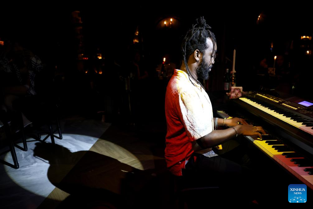 HAIKOU, 15 agosto, 2024 (Xinhua) -- Imagen del 6 de agosto de 2024 de David Mouk realizando una presentación en un bar musical, en Haikou, en la provincia de Hainan, en el sur de China. Como profesor de piano y músico de banda, David proviene de la República del Congo y ha estado viviendo en Hainan desde hace casi 10 años. Habiendo estudiado música desde la infancia, formó su propia banda mientras estaba en la universidad y luego vino aquí para realizar una maestría. El músico cree firmemente que la música es una parte indispensable de la vida y puede brindar poder a las personas. Por lo tanto fundó un estudio de música para enseñar a los niños a tocar el piano. Fuera del estudio, David toca el teclado en varias bandas. "Considero a Hainan como mi segundo hogar y deseo hacer más música hermosa aquí", dijo David. (Xinhua/Zhang Liyun)