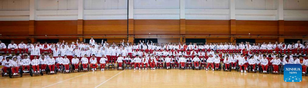 BEIJING, 16 agosto, 2024 (Xinhua) -- Imagen del 16 de agosto de 2024 de una vista general en la ceremonia de presentación de la delegación paralímpica de China para los Juegos Paralímpicos de París 2024, en Beijing, capital de China. (Xinhua/Federación de Personas con Discapacidad de China)