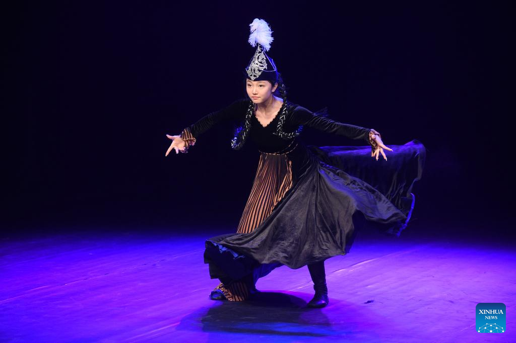 BRASILIA, 15 agosto, 2024 (Xinhua) -- Imagen del 14 de agosto de 2024 de una bailarina de la Academia de Danza de Beijing presentándose en el espectáculo "Danzas Etnicas de China", como parte de la Temporada Cultural China en Brasil con motivo del 50 aniversario de las relaciones diplomáticas entre China y Brasil, en Brasilia, Brasil. (Xinhua/Lucio Tavora)