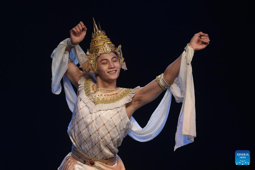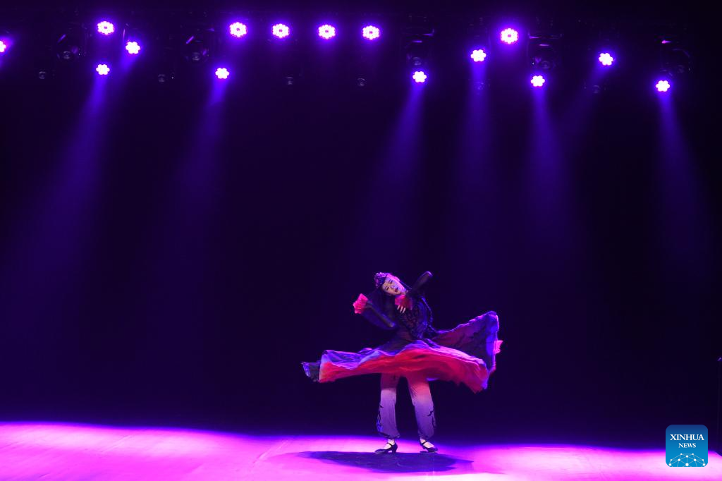 BRASILIA, 15 agosto, 2024 (Xinhua) -- Imagen del 14 de agosto de 2024 de un bailarín de la Academia de Danza de Beijing presentándose en el espectáculo "Danzas Etnicas de China", como parte de la Temporada Cultural China en Brasil con motivo del 50 aniversario de las relaciones diplomáticas entre China y Brasil, en Brasilia, Brasil. (Xinhua/Lucio Tavora)