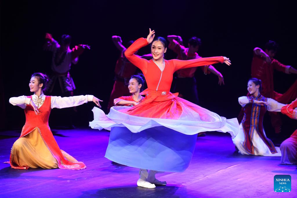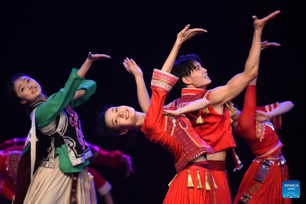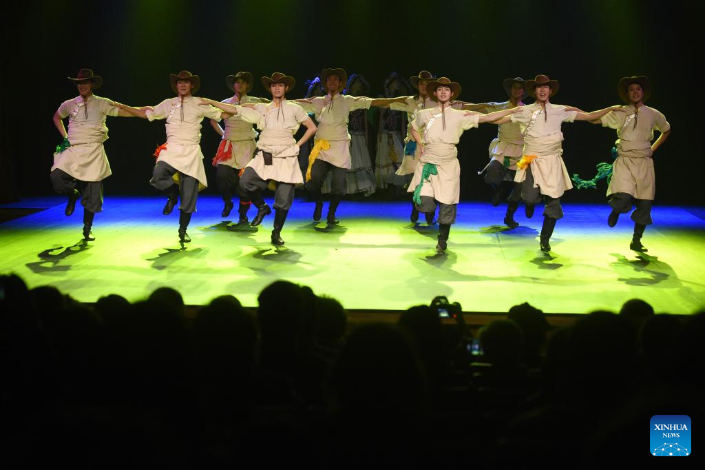 BRASILIA, 15 agosto, 2024 (Xinhua) -- Imagen del 14 de agosto de 2024 de bailarines de la Academia de Danza de Beijing presentándose en el espectáculo "Danzas Etnicas de China", como parte de la Temporada Cultural China en Brasil con motivo del 50 aniversario de las relaciones diplomáticas entre China y Brasil, en Brasilia, Brasil. (Xinhua/Lucio Tavora)