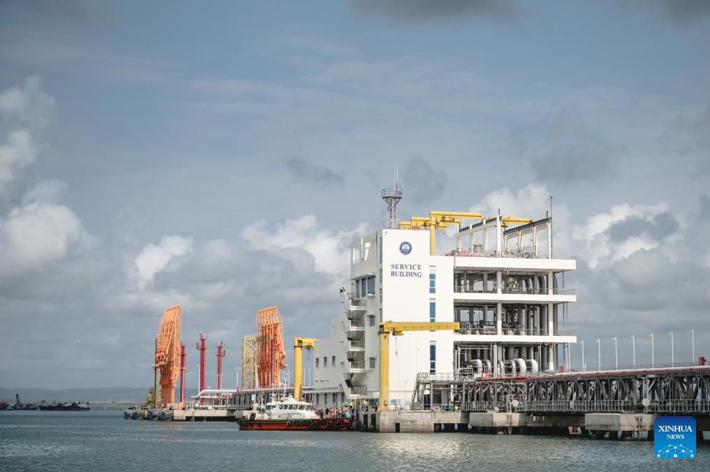 MOMBASA, 16 agosto, 2024 (Xinhua) -- Imagen del 15 de agosto de 2024 de una vista parcial de la Terminal Petrolera de Mombasa de Kenia, en Mombasa, Kenia. Construida por China Communications Construction Co., Ltd., la Terminal Petrolera Mombasa de Kenia comenzó operaciones oficialmente en agosto de 2022. La terminal ha mejorado en gran medida la capacidad de transferencia de petróleo y gas y la eficiencia de descarga de petróleo del puerto de Mombasa. (Xinhua/Wang Guansen)