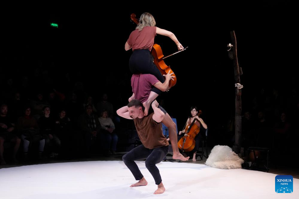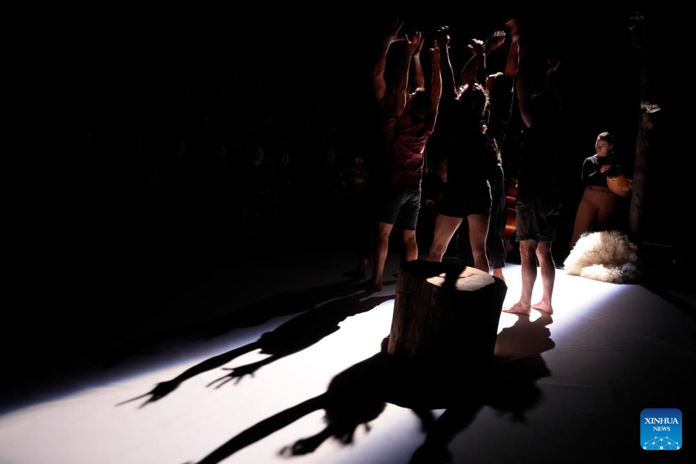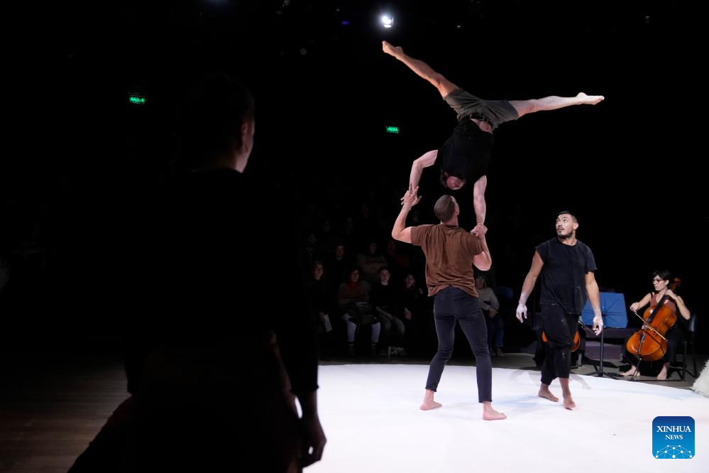MONTEVIDEO, 20 agosto, 2024 (Xinhua) -- Imagen del 19 de agosto de 2024 de artistas realizando una presentación durante la función de circo "Reclaim" de la compañía "Theatre d'Un Jour" de Bélgica en el marco del Festival Internacional de Artes Escénicas, en el Teatro Solís, en Montevideo, capital de Uruguay. (Xinhua/Nicolás Celaya)