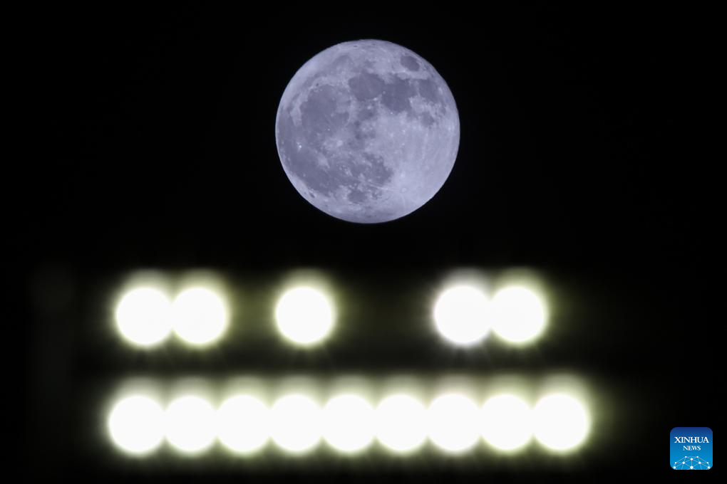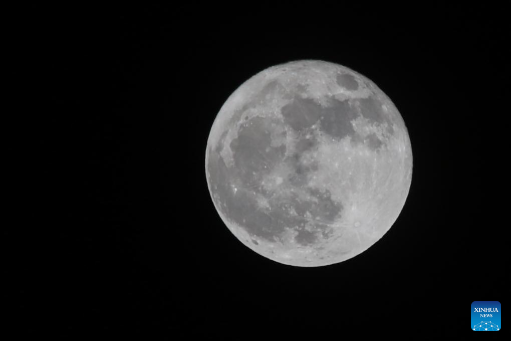 SAN SALVADOR, 20 agosto, 2024 (Xinhua) -- Imagen del 19 de agosto de 2024 de la luna llena vista en el cielo, en el departamento de San Salvador, El Salvador. (Xinhua/Alexander Peña)