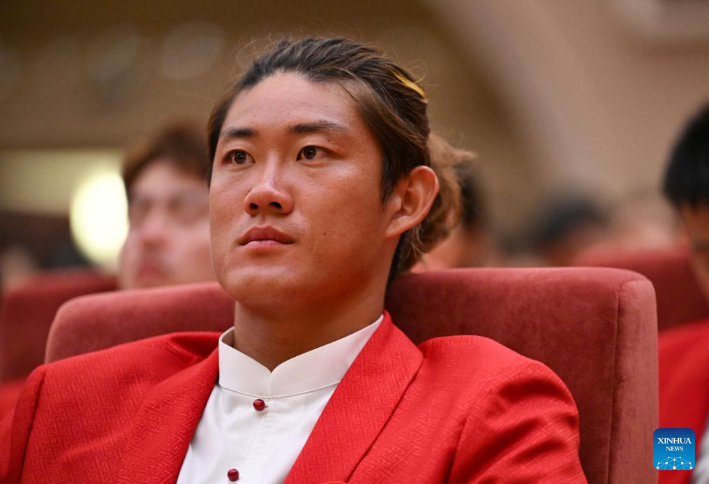 BEIJING, 20 agosto, 2024 (Xinhua) -- El jugador de tenis Zhang Zhizhen asiste a la ceremonia de evaluación de la delegación olímpica china en París 2024, en Beijing, capital de China, el 20 de agosto de 2024. (Xinhua/Song Yanhua)