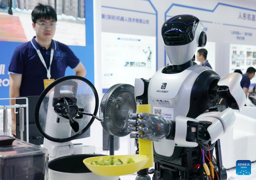 BEIJING, 21 agosto, 2024 (Xinhua) -- Un robot humanoide demuestra habilidades culinarias durante la Conferencia Mundial de Robots 2024, en Beijing, capital de China, el 21 de agosto de 2024. La Conferencia Mundial de Robots 2024 se inauguró aquí el miércoles. (Xinhua/Zhang Chenlin)