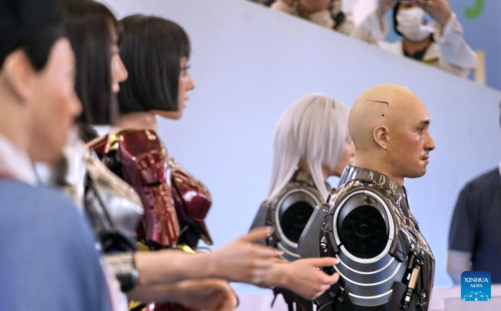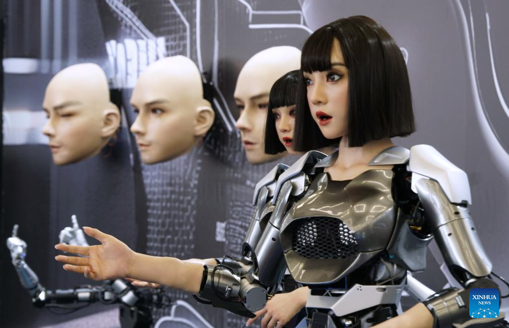 BEIJING, 21 agosto, 2024 (Xinhua) -- Robots humanoides son vistos durante la Conferencia Mundial de Robots 2024, en Beijing, capital de China, el 21 de agosto de 2024. La Conferencia Mundial de Robots 2024 se inauguró aquí el miércoles. (Xinhua/Li Xin)
