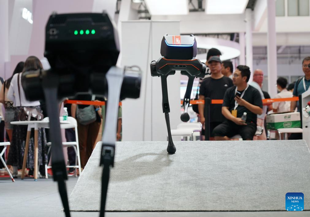 BEIJING, 21 agosto, 2024 (Xinhua) -- Un robot bípedo demuestra habilidades para escalar durante la Conferencia Mundial de Robots 2024, en Beijing, capital de China, el 21 de agosto de 2024. La Conferencia Mundial de Robots 2024 se inauguró aquí el miércoles. (Xinhua/Zhang Chenlin)