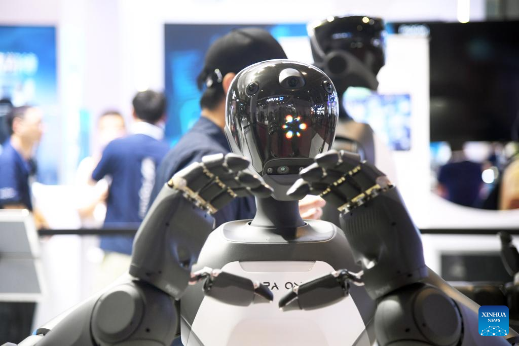 BEIJING, 21 agosto, 2024 (Xinhua) -- Un robot humanoide es visto durante la Conferencia Mundial de Robots 2024, en Beijing, capital de China, el 21 de agosto de 2024. La Conferencia Mundial de Robots 2024 se inauguró aquí el miércoles. (Xinhua/Ren Chao)