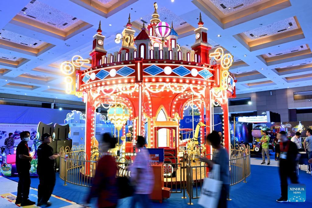YAKARTA, 21 agosto, 2024 (Xinhua) -- Personas visitan la Fun Asia Expo 2024, en Yakarta, Indonesia, el 21 de agosto de 2024. La exposición de dos días que incluye atracciones de parques de diversiones y juegos de ocio comenzó aquí el miércoles. (Xinhua/Veri Sanovri)