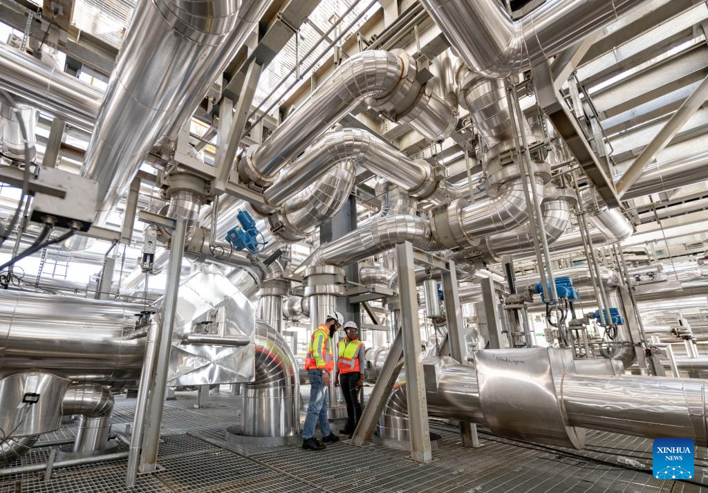 POSTMASBURG, 21 agosto, 2024 (Xinhua) -- Imagen del 20 de agosto de 2024 de trabajadores laborando en el Proyecto de Energía Térmica Solar Concentrada de Redstone cerca de Postmasburg, en la provincia de Cabo Norte, Sudáfrica. El proyecto es una de las plantas de energía renovable más grandes del país. (Xinhua/Zhang Yudong)