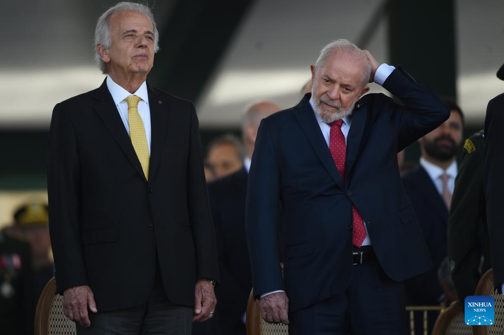 BRASILIA, 22 agosto, 2024 (Xinhua) -- El presidente brasileño, Luiz Inácio Lula da Silva (d), y el ministro de Defensa brasileño, José Múcio Monteiro (i), asisten al desfile militar en conmemoración del Día del Soldado, en Brasilia, Brasil, el 22 de agosto de 2024. (Xinhua/Lucio Tavora)
