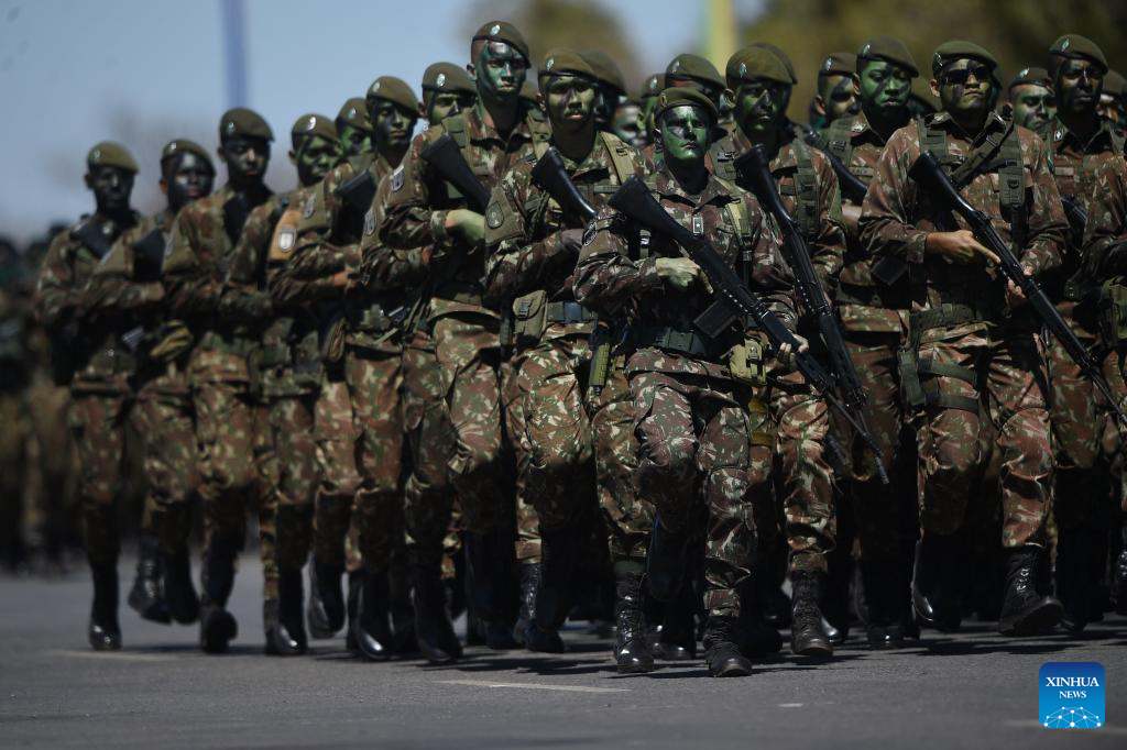 BRASILIA, 22 agosto, 2024 (Xinhua) -- Soldados del Ejército brasileño marchan durante el desfile militar en conmemoración del Día del Soldado, en Brasilia, Brasil, el 22 de agosto de 2024. (Xinhua/Lucio Tavora)