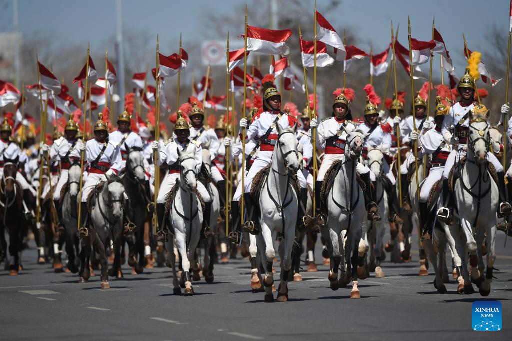 BRASILIA, 22 agosto, 2024 (Xinhua) -- Soldados del Ejército brasileño montan a caballo durante el desfile militar en conmemoración del Día del Soldado, en Brasilia, Brasil, el 22 de agosto de 2024. (Xinhua/Lucio Tavora)