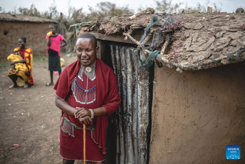 NAROK, 22 agosto, 2024 (Xinhua) -- Imagen del 21 de agosto de 2024 de un aldeano masái de pie frente a su vivienda en una aldea en la Reserva Nacional Masái Mara, en Narok, Kenia. Los masái, una de las principales tribus de Kenia, se encuentran principalmente dispersos en las partes sur y suroeste fronterizas con Tanzania. La tribu todavía vive de manera nómada. Su asentamiento cubre los destinos turísticos mundialmente famosos de la Reserva Nacional Masái Mara y el Parque Nacional Serengeti. Con el desarrollo de la industria turística local, el pueblo masái ha abierto sus aldeas para recibir a los turistas, como una forma de aumentar sus ingresos mientras mantiene su estilo de vida tradicional. (Xinhua/Wang Guansen)