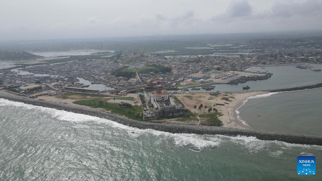 ACCRA, 23 agosto, 2024 (Xinhua) -- Vista aérea tomada con un dron del 19 de junio de 2024 del castillo de Elmina y sus alrededores, en Cape Coast, Ghana. "Costa de los Esclavos" se refiere a una región histórica a lo largo de la costa de Africa Occidental. El nombre deriva de la trata transatlántica de esclavos en el continente. El 23 de agosto se conmemora el Día Internacional del Recuerdo de la Trata de Esclavos y de su Abolición. (Xinhua/Seth)