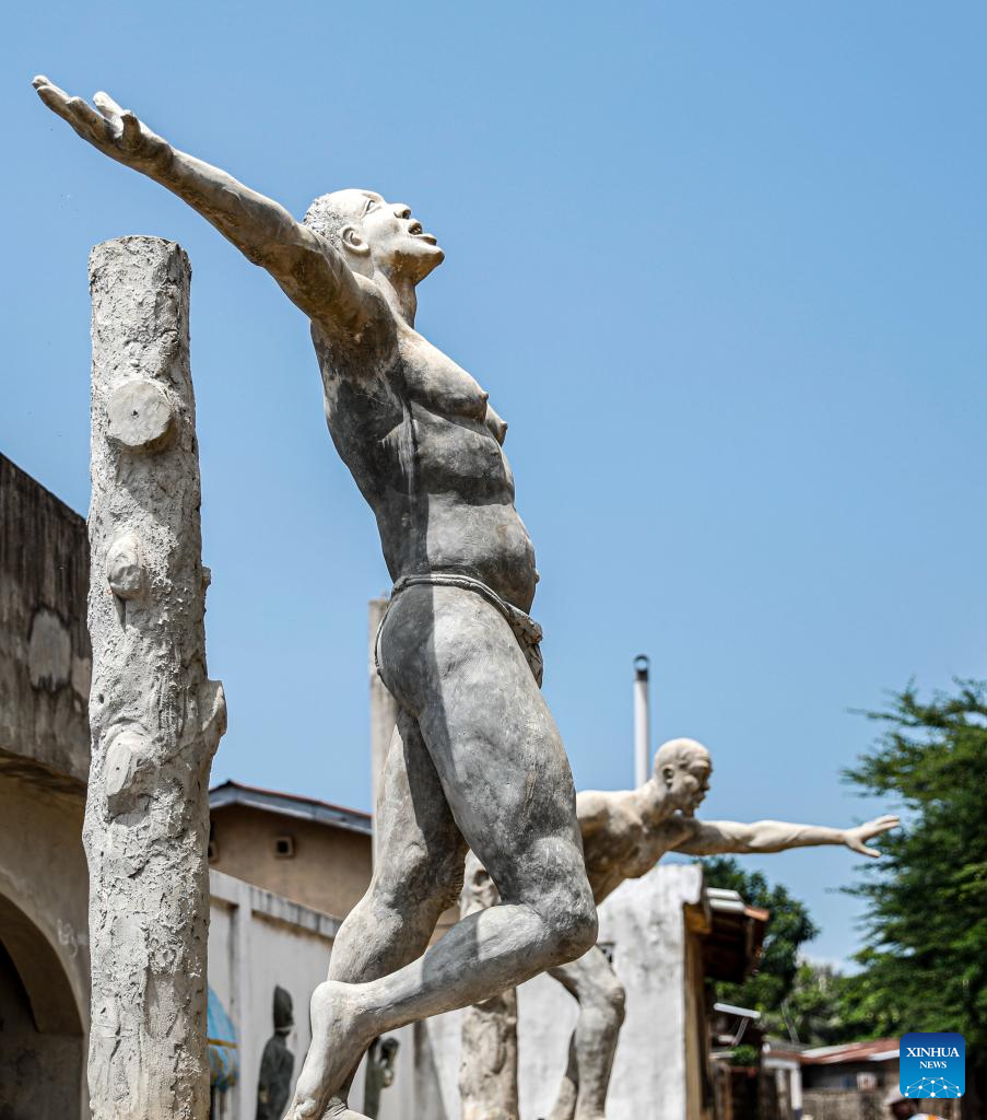 OUIDAH, 23 agosto, 2024 (Xinhua) -- Imagen del 27 de mayo de 2024 de estatuas que representan la lucha contra la esclavitud y la opresión, en Ouidah, Benín. "Costa de los Esclavos" se refiere a una región histórica a lo largo de la costa de Africa Occidental. El nombre deriva de la trata transatlántica de esclavos en el continente. El 23 de agosto se conmemora el Día Internacional del Recuerdo de la Trata de Esclavos y de su Abolición. (Xinhua/Li Yahui)