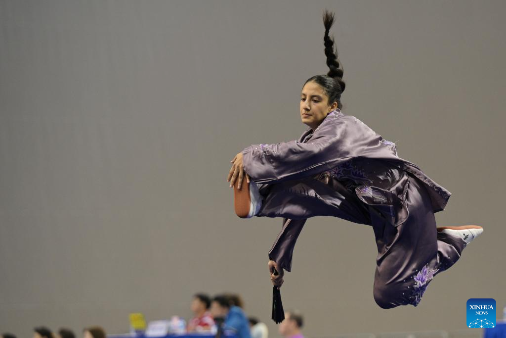 SINGAPUR, 26 agosto, 2024 (Xinhua) -- Rojy Alaa Elsayed Ibrahim, de Egipto, participa durante la competencia de Taijishan del tercer set del Grupo A & B femenino en el 4º Campeonato Mundial de Taijiquan celebrado en Singapur, el 26 de agosto de 2024. (Xinhua/Then Chih Wey)