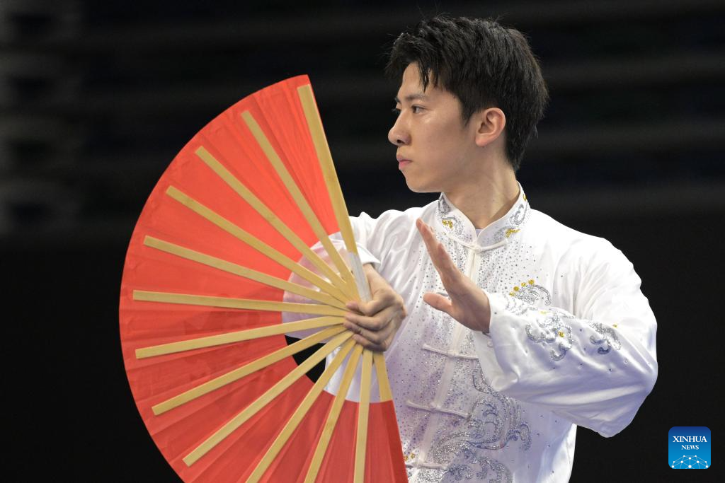 SINGAPUR, 27 agosto, 2024 (Xinhua) -- Ji Hao, de China, participa durante la competencia de Taijiquan del tercer set de los grupos A y B masculinos en el 4 Campeonato Mundial de Taijiquan, en Singapur, el 27 de agosto de 2024. (Xinhua/Then Chih Wey)
