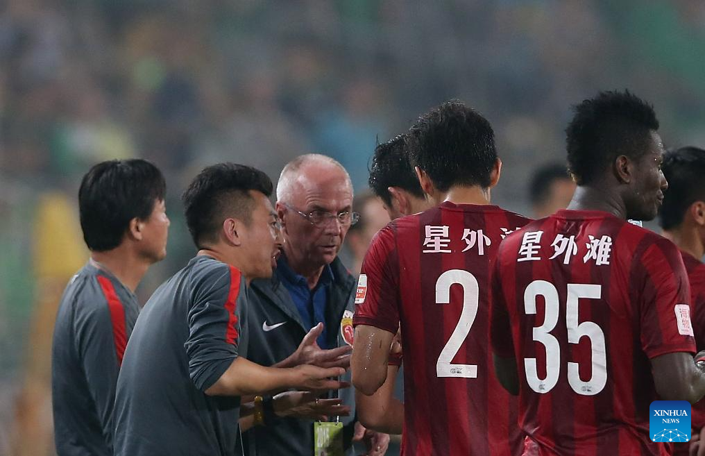 BEIJING, 27 agosto, 2024 (Xinhua) -- Imagen del 20 de julio de 2015 de Sven-Goran Eriksson (3-i), dando instrucciones durante el partido de la Superliga China 2015 entre el Beijing Guoan y el Shanghai SIPG, en Beijing, capital de China. El director técnico sueco Sven-Goran Eriksson, que entrenó a la selección de Inglaterra de 2001 a 2006, falleció el lunes a los 76 años después de una batalla contra el cáncer de páncreas. En enero, Eriksson reveló que padecía un cáncer terminal y que le quedaba "en el mejor de los casos un año" de vida. Eriksson entrenó en China durante aproximadamente cinco años. En 2013, llegó a la Superliga China para entrenar al Guangzhou R&F. En 2015, se convirtió en director técnico de Shanghai SIPG Club. (Xinhua/Cao Can)