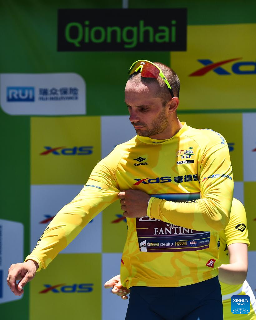 QIONGHAI, 27 agosto, 2024 (Xinhua) -- Jakub Mareczko del equipo Corratec Vini Fantini de Italia gana el maillot amarillo durante el Día 1 de la 15 carrera ciclista del Tour de la Isla de Hainan, en Qionghai, en la provincia de Hainan, en el sur de China, el 27 de agosto de 2024. (Xinhua/Yang Guanyu)