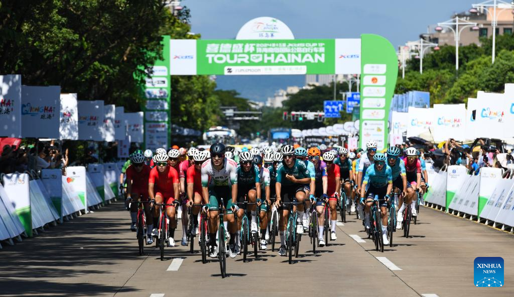 QIONGHAI, 27 agosto, 2024 (Xinhua) -- Ciclistas toman la salida durante el Día 1 de la 15 carrera ciclista del Tour de la Isla de Hainan, en Qionghai, en la provincia de Hainan, en el sur de China, el 27 de agosto de 2024. (Xinhua/Yang Guanyu)