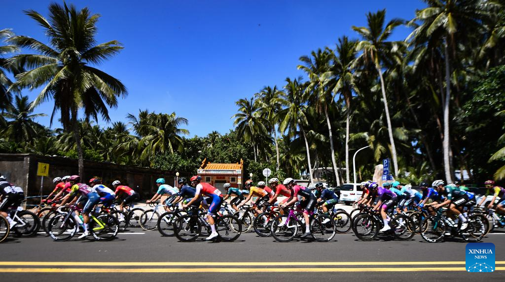 QIONGHAI, 27 agosto, 2024 (Xinhua) -- Ciclistas compiten durante el Día 1 de la 15 carrera ciclista del Tour de la Isla de Hainan, en Qionghai, en la provincia de Hainan, en el sur de China, el 27 de agosto de 2024. (Xinhua/Yang Guanyu)