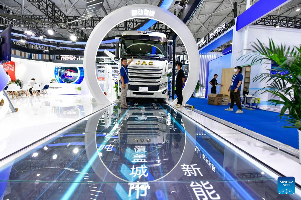 GUIYANG, 28 agosto, 2024 (Xinhua) -- Un camión para carga pesada sin conductor es visto en la Exposición Internacional de la Industria de Macrodatos de China 2024, en Guiyang, en la provincia de Guizhou, en el suroeste de China, el 28 de agosto de 2024. La Exposición Internacional de la Industria de Macrodatos de China 2024 se inauguró el miércoles en Guiyang, con la participación de más de 21.000 visitantes y 414 empresas nacionales e internacionales. Las empresas mostrarán sus tecnologías digitales de vanguardia, soluciones y aplicaciones innovadoras en diversos campos. La muestra de este año, con el lema "La tecnología digital inteligente da forma a una próspera economía digital", ocupa una superficie de exhibición de 60.000 metros cuadrados y consta de seis secciones principales. (Xinhua/Yang Wenbin)