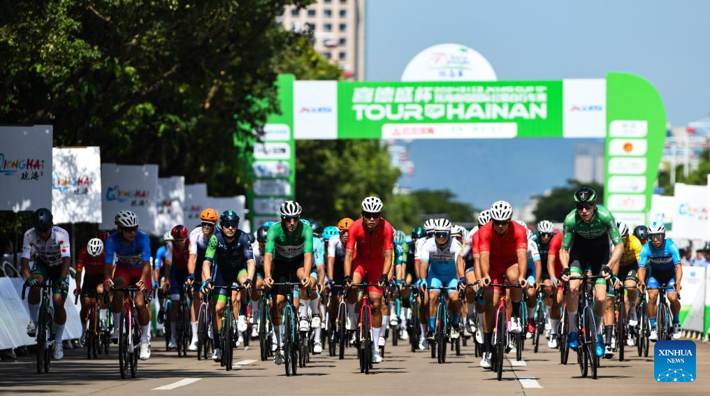 LINGSHUI, 28 agosto, 2024 (Xinhua) -- Ciclistas salen durante la Etapa 2 de la 15 carrera ciclista del Tour de la Isla de Hainan de Qionghai a Lingshui, en la provincia de Hainan, en el sur de China, el 28 de agosto de 2024. (Xinhua/Yang Guanyu)
