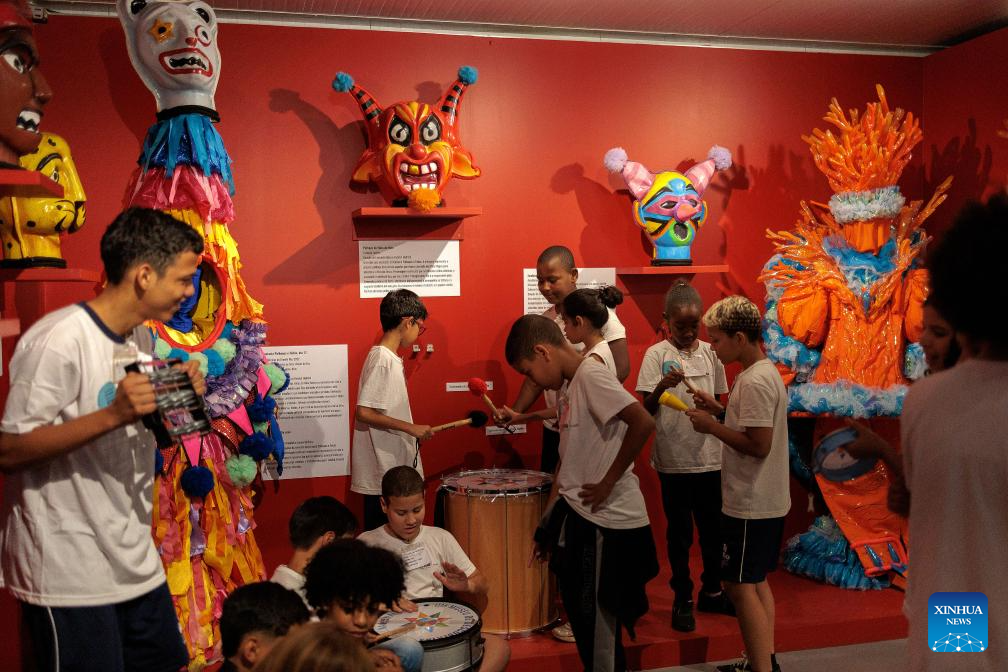 RIO DE JANEIRO, 29 agosto, 2024 (Xinhua) -- Niños de la Escuela Municipal Maestro Waldemiro tocan instrumentos musicales en la exposición "Un Museo de Descubrimientos" en la Estación Museo Nacional del Campus de Investigación y Enseñanza del Museo Nacional, en Río de Janeiro, Brasil, el 29 de agosto de 2024. (Xinhua/Claudia Martini)