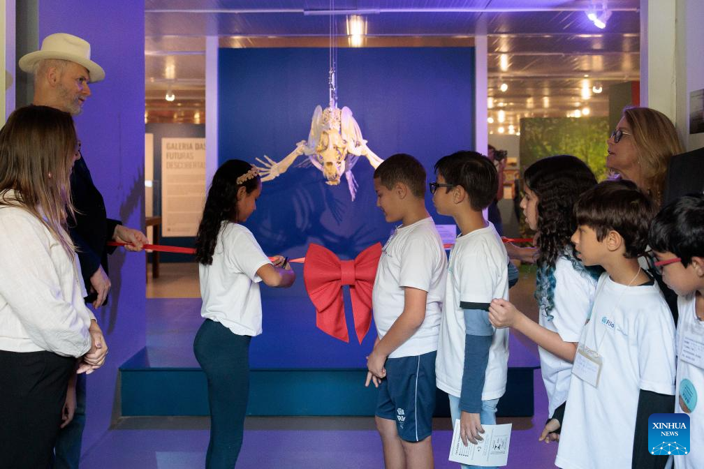 RIO DE JANEIRO, 29 agosto, 2024 (Xinhua) -- Una niña (2-i) de la Escuela Municipal Maestro Waldemiro corta el listón de la inauguración de la exposición "Un Museo de Descubrimientos" en la Estación Museo Nacional del Campus de Investigación y Enseñanza del Museo Nacional, en Río de Janeiro, Brasil, el 29 de agosto de 2024. (Xinhua/Claudia Martini)