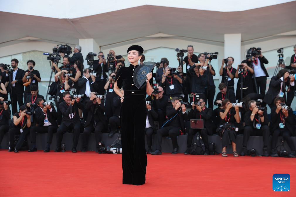 VENECIA, 29 agosto, 2024 (Xinhua) -- Imagen del 28 de agosto de 2024 de la actriz china, Zhang Ziyi, miembro del jurado del 81 Festival de Cine de Venecia, posando para fotografías en la alfombra roja previo a la ceremonia de apertura del festival de cine, en Venecia, Italia. El 81 Festival de Cine de Venecia comenzó el miércoles en la isla de Lido, en Venecia, Italia, mostrando 21 películas que compiten por el prestigioso premio León Dorado. (Xinhua/Li Jing)