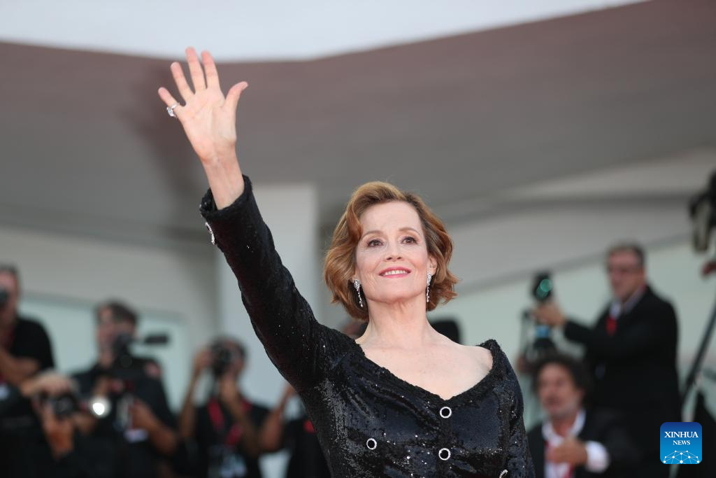 VENECIA, 29 agosto, 2024 (Xinhua) -- Imagen del 28 de agosto de 2024 de Sigourney Weaver posando para fotografías en la alfombra roja previo a la ceremonia de apertura del 81 Festival de Cine de Venecia, en Venecia, Italia. La actriz estadounidense Sigourney Weaver fue premiada con el León de Oro por trayectoria del 81 Festival de Cine de Venecia, que comenzó el miércoles. (Xinhua/Li Jing)