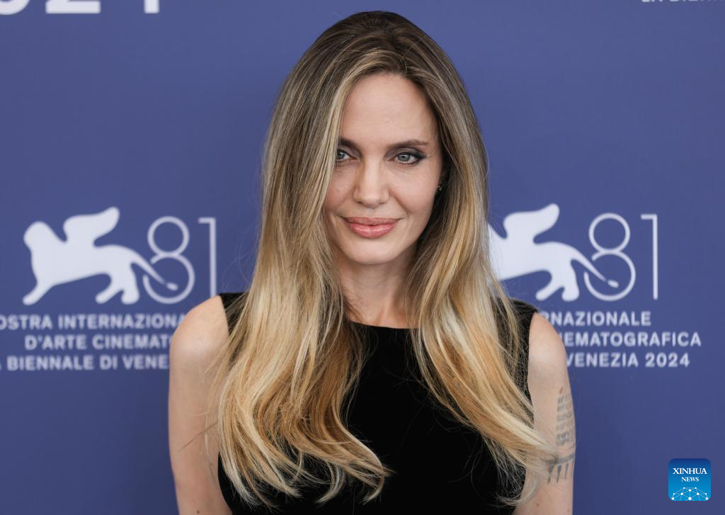 VENECIA, 29 agosto, 2024 (Xinhua) -- Angelina Jolie de la película "Maria" posa para la sesión fotográfica durante el 81 Festival Internacional de Cine de Venecia, en Venecia, Italia, el 29 de agosto de 2024. (Xinhua/Li Jing)