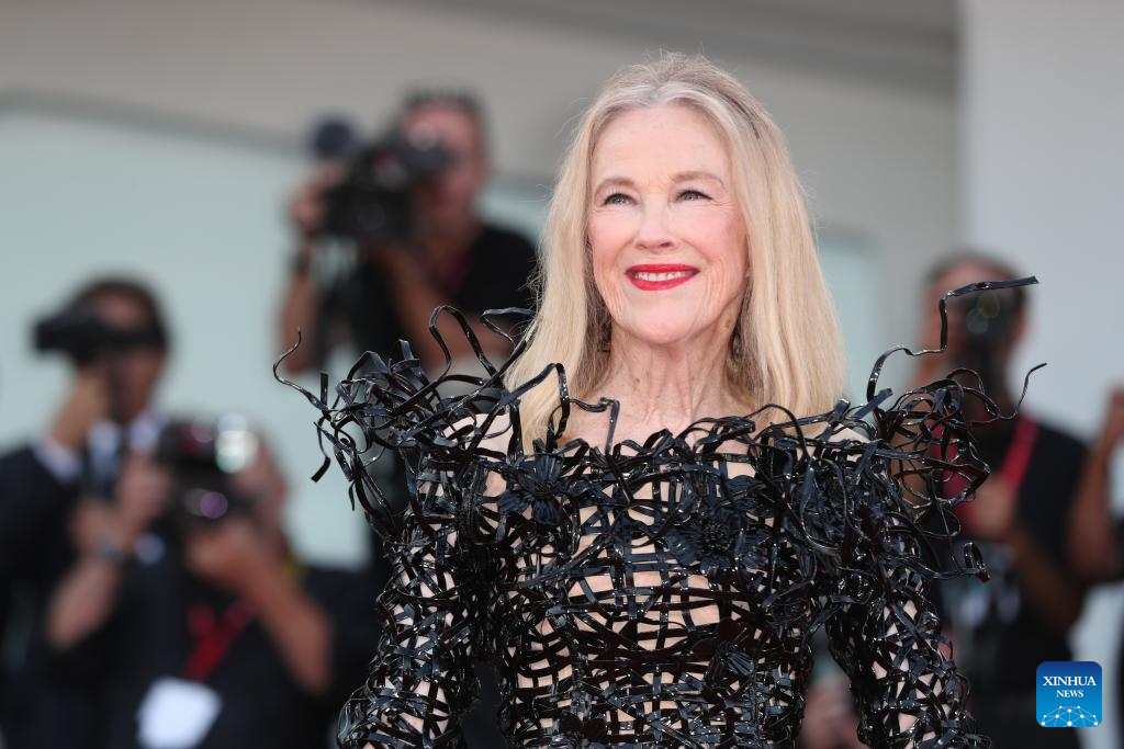 VENECIA, 29 agosto, 2024 (Xinhua) -- Imagen del 28 de agosto de 2024 de la actriz canadiense-estadounidense, Catherine O'Hara, posando para fotografías en la alfombra roja previo a la ceremonia de apertura del 81 Festival de Cine de Venecia, en Venecia, Italia. El 81 Festival de Cine de Venecia comenzó el miércoles en la isla de Lido, en Venecia, Italia, mostrando 21 películas que compiten por el prestigioso premio León Dorado. (Xinhua/Li Jing)