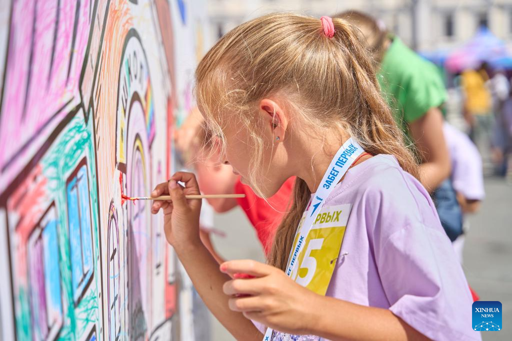 VLADIVOSTOK, 31 agosto, 2024 (Xinhua) -- Una niña participa en una actividad de pintura durante un evento por el Día del Conocimiento, en Vladivostok, Rusia, el 31 de agosto de 2024. El evento por el Día del Conocimiento se llevó a cabo el sábado en Vladivostok para celebrar el comienzo del nuevo año escolar. El evento que incluye deportes, arte y juegos, atrajo a muchos niños. (Xinhua/Guo Feizhou)
