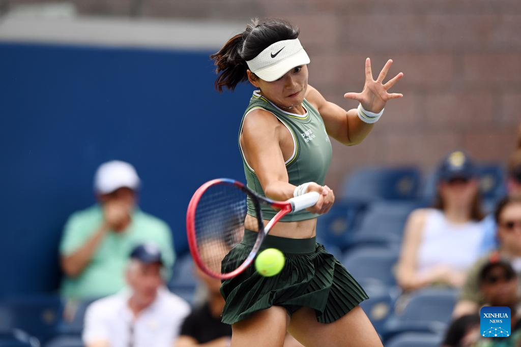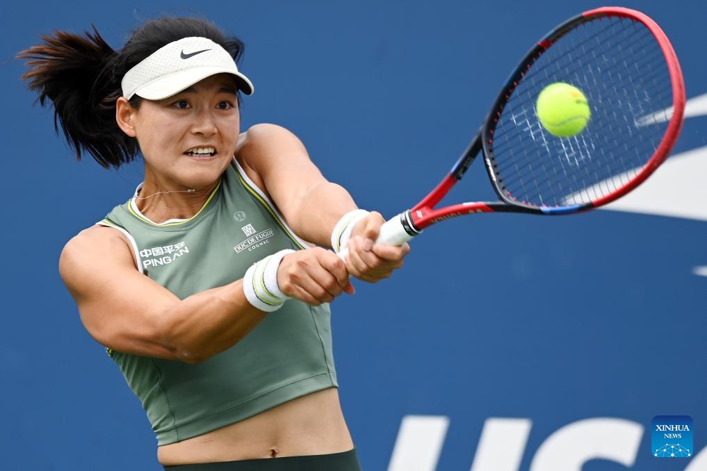 NUEVA YORK, 31 agosto, 2024 (Xinhua) -- Imagen del 30 de agosto de 2024 de Wang Yafan compitiendo durante el partido de tercera ronda de individuales femeninos entre Wang Yafan de China y Victoria Azarenka de Bielorrusia en el campeonato de tenis US Open 2024, en Nueva York, Estados Unidos. (Xinhua/Li Rui)