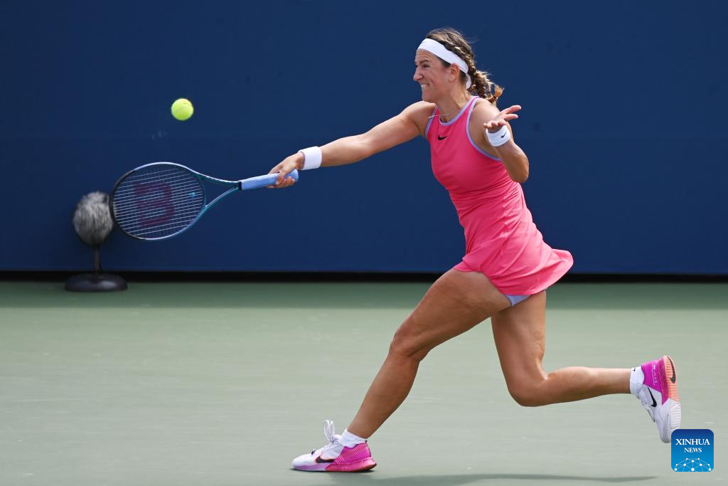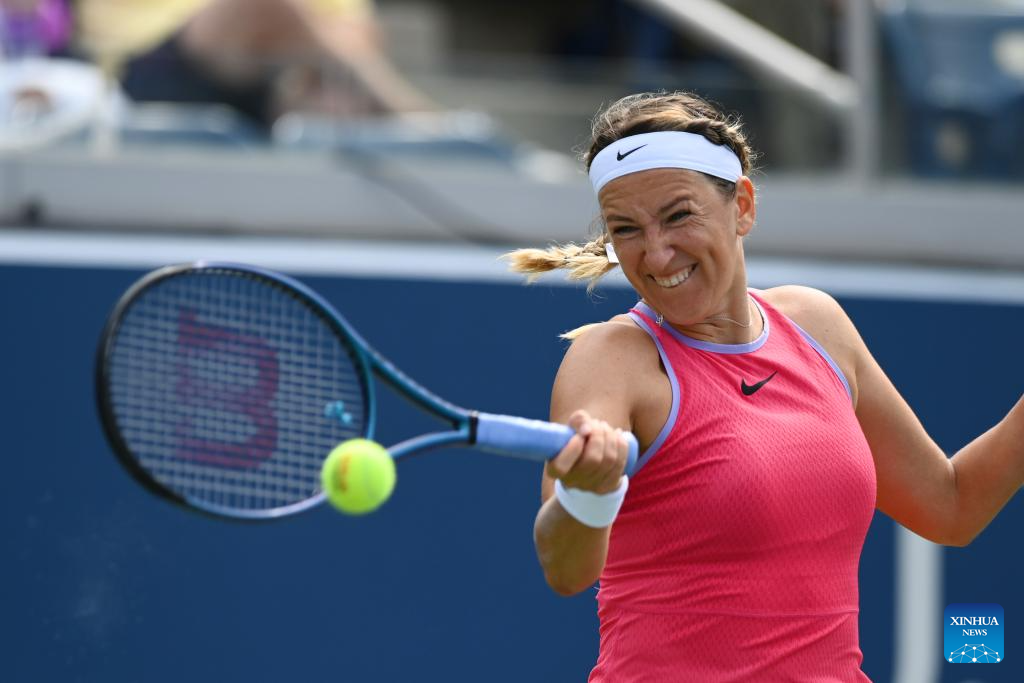 NUEVA YORK, 31 agosto, 2024 (Xinhua) -- Imagen del 30 de agosto de 2024 de Victoria Azarenka compitiendo durante el partido de tercera ronda de individuales femeninos entre Wang Yafan de China y Victoria Azarenka de Bielorrusia en el campeonato de tenis US Open 2024, en Nueva York, Estados Unidos. (Xinhua/Li Rui)
