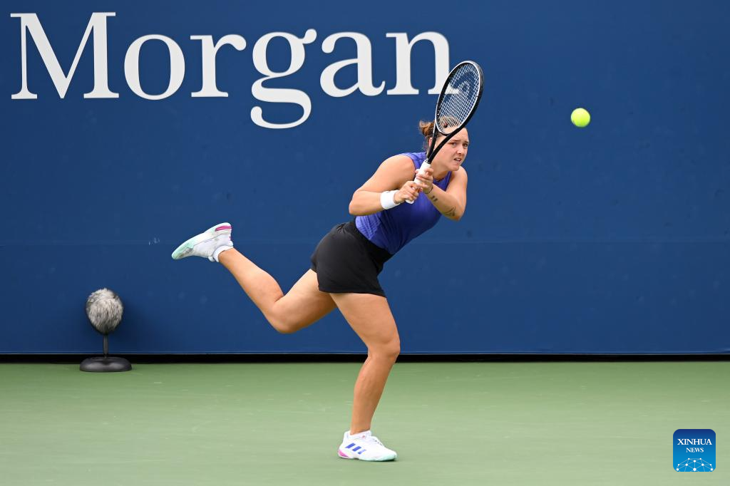NUEVA YORK, 31 agosto, 2024 (Xinhua) -- Imagen del 30 de agosto de 2024 de Jule Niemeier de Alemania compitiendo durante el partido de tercera ronda de individuales femeninos entre Zheng Qinwen de China y Jule Niemeier de Alemania en el campeonato de tenis US Open 2024, en Nueva York, Estados Unidos. (Xinhua/Li Rui)
