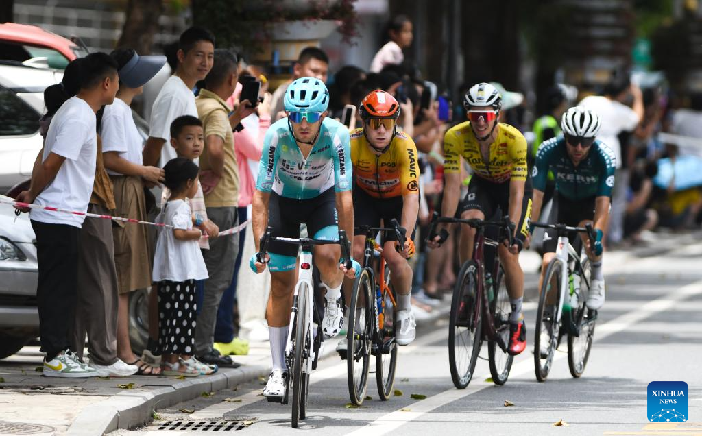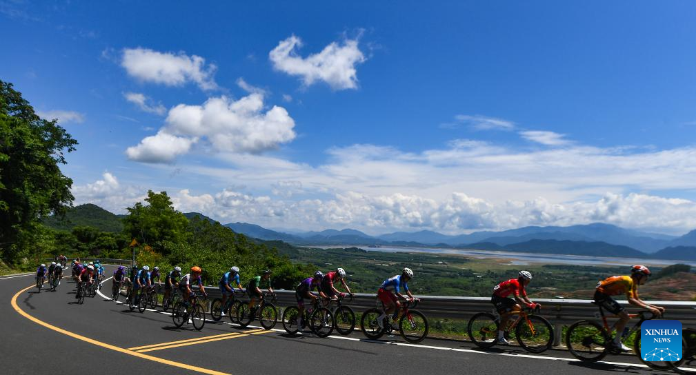 SANYA, 31 agosto, 2024 (Xinhua) -- Ciclistas compiten durante la Etapa 5 de la 15 carrera ciclista del Tour de la Isla de Hainan de Changjiang a Sanya, en la provincia de Hainan, en el sur de China, el 31 de agosto de 2024. (Xinhua/Yang Guanyu)