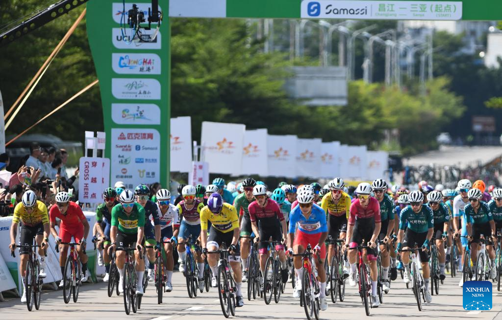 SANYA, 31 agosto, 2024 (Xinhua) -- Ciclistas arrancan durante la Etapa 5 de la 15 carrera ciclista del Tour de la Isla de Hainan de Changjiang a Sanya, en la provincia de Hainan, en el sur de China, el 31 de agosto de 2024. (Xinhua/Yang Guanyu)